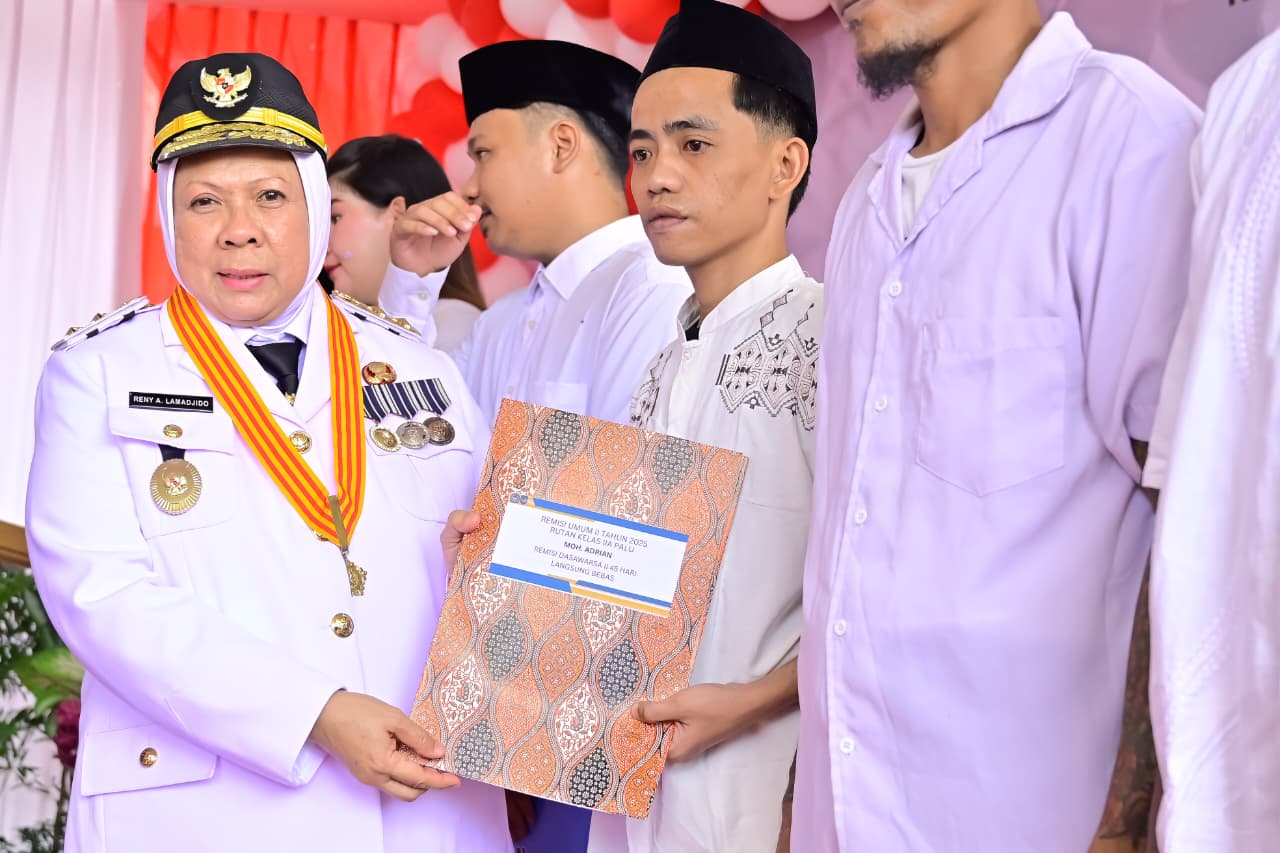 Penyerahan remisi dilakukan secara simbolis oleh Wakil Gubernur Sulawesi Tengah, dr. Reny A. Lamadjido, di Lembaga Pemasyarakatan Kelas IIA Palu.