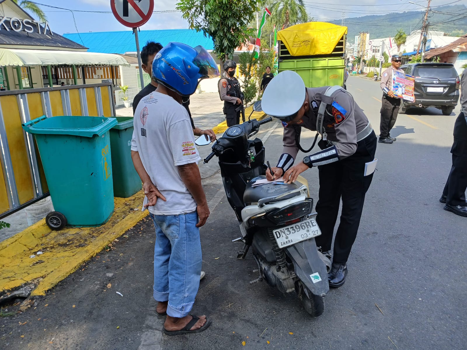 Selain penindakan, Polres Banggai juga aktif melakukan sosialisasi melalui pembagian brosur dan stiker kepada pengendara.