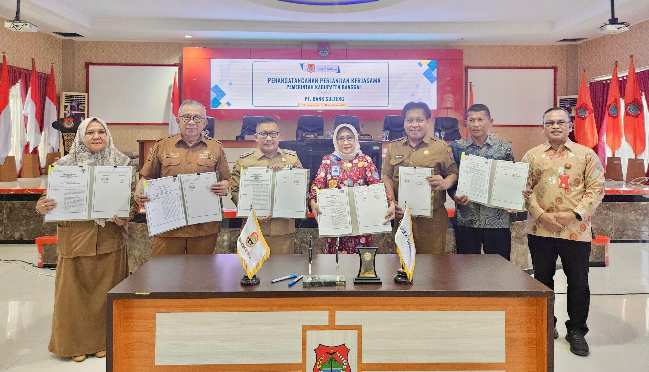 Penandatanganan dilaksanakan di Kantor Bupati Banggai, Luwuk, dan dihadiri oleh Bupati Banggai H. Amirudin, jajaran Sekretariat Daerah Kabupaten Banggai, serta Direksi Utama PT Bank Sulteng Hj. Ramiyatie beserta pimpinan Cabang Bank Sulteng Luwuk.