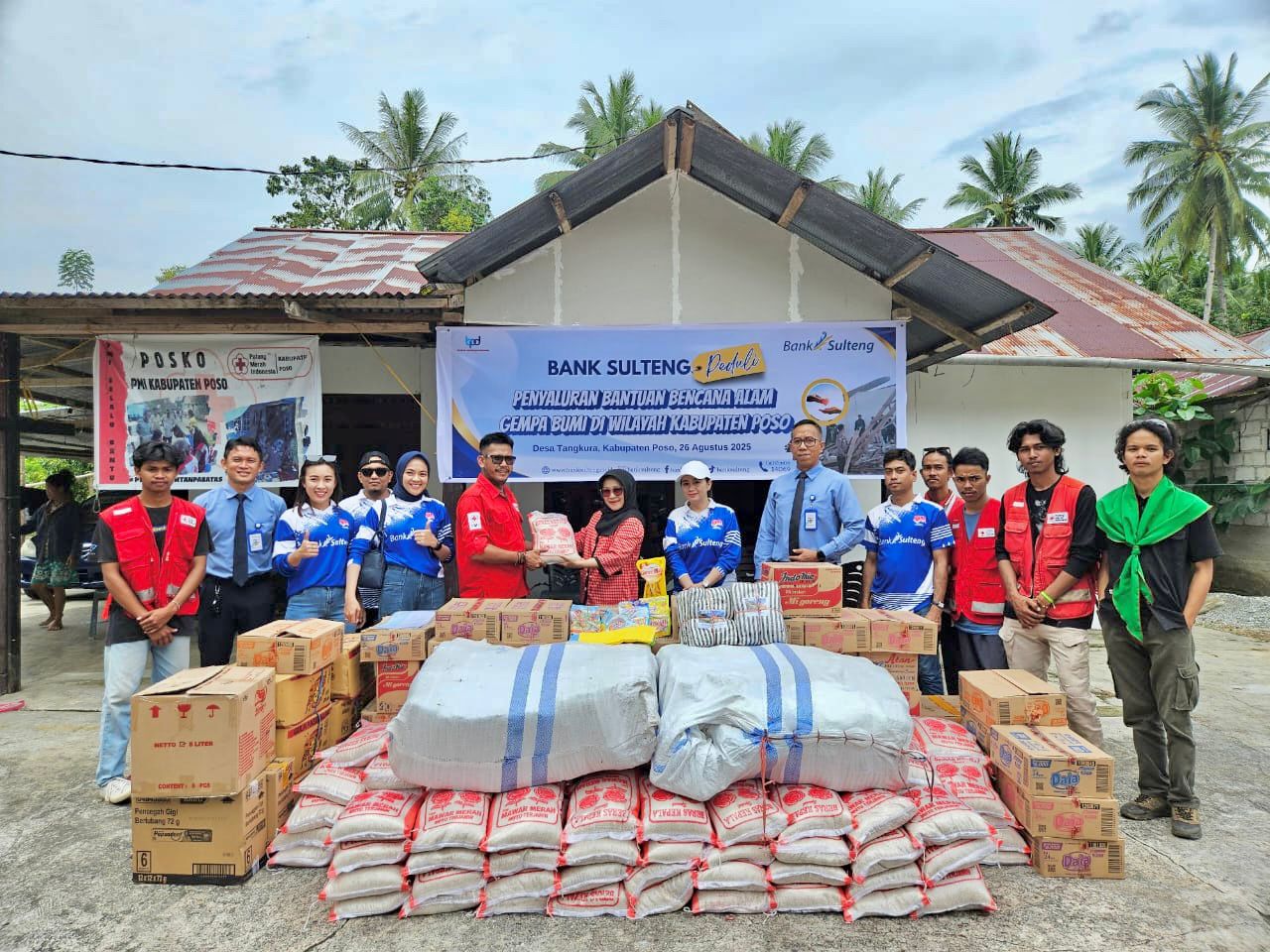 Sebagai bentuk tanggung jawab sosial, Bank melalui program Peduli” menyalurkan bantuan tanggap darurat kepada warga terdampak. Bantuan tersebut berupa paket sembako, selimut, handuk, dan kebutuhan pokok lainnya. Penyerahan dilakukan melalui Palang Merah Indonesia (PMI) Kabupaten Poso di Desa pada 26 Agustus 2025.
