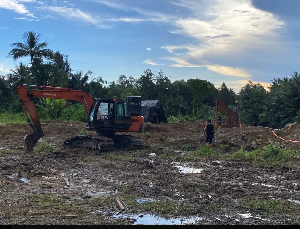 Dua pelaku berinisial NF (56) dan HA (31) ditangkap saat tengah beraktivitas menggunakan peralatan lengkap, termasuk satu unit excavator yang mereka sewa untuk memudahkan pekerjaan.