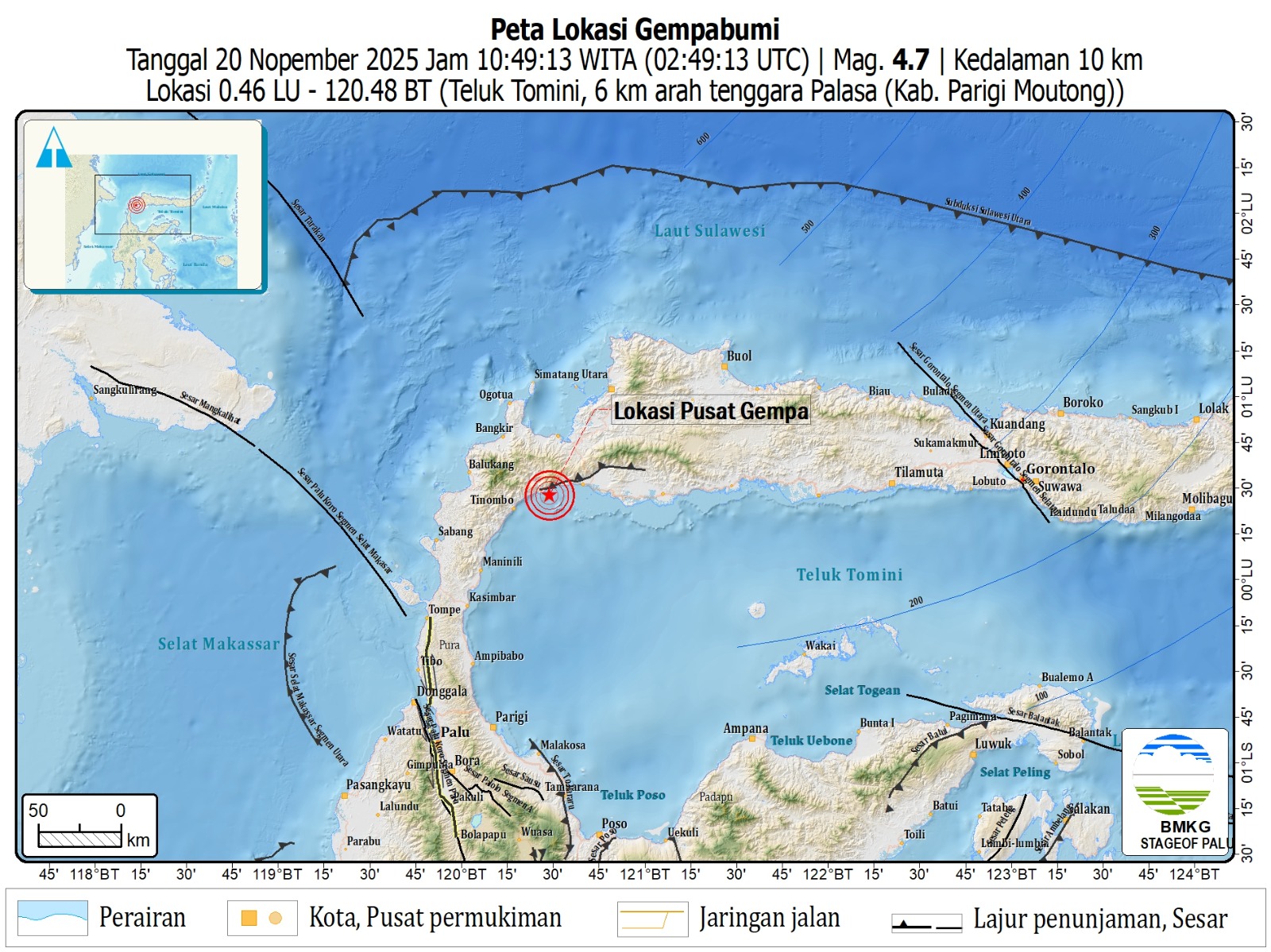 ,.id – bumi tektonik dengan magnitudo 4,7 mengguncang wilayah Parigi Moutong, Kamis (20/11). Guncangan terjadi pada pukul 10.49 WITA dan dirasakan di sejumlah daerah, terutama Kecamatan Palasa.