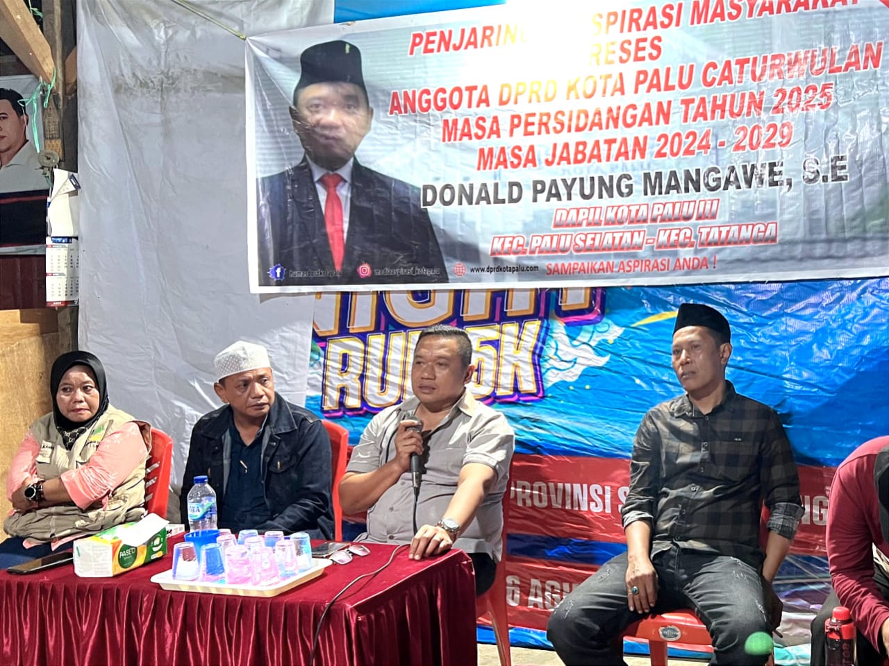 Palu, truestory.id – Dalam rangka menyerap aspirasi masyarakat, anggota DPRD Kota Palu, Donald Payung Mangawe, mengadakan kegiatan reses di Jalan Sungai Sadan, Kelurahan Nunu, Kecamatan Tatanga, Dapil Palu Selatan–Tatanga, Jumat (18/4/2025).
