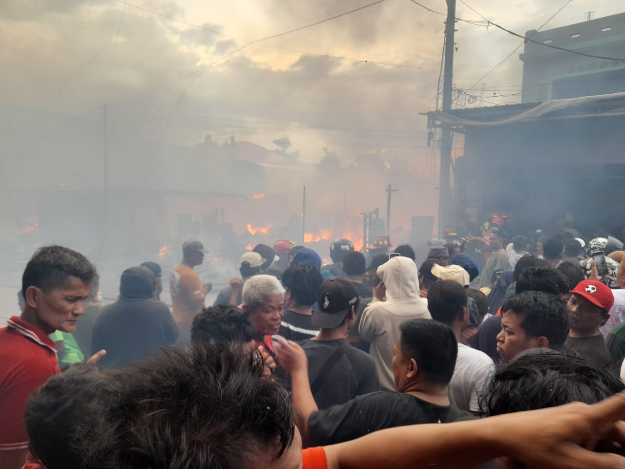 “Api membesar dari salah satu kios dan cepat merambat ke bangunan lainnya. Lima unit mobil pemadam dikerahkan dan bersama warga, petugas berhasil menjinakkan api setelah berjibaku selama lebih dari satu jam,” ujar Kombes Deny kepada awak media.
